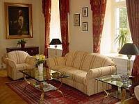 Az antik bútorok, a régi festmények, a velencei csillárok 19. századi miliőt idéznek fel a szalonban és a könyvtárban.